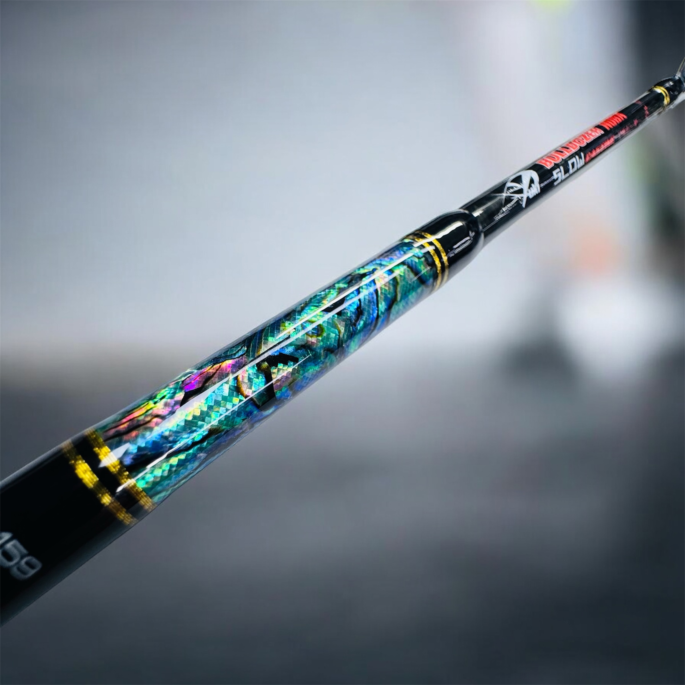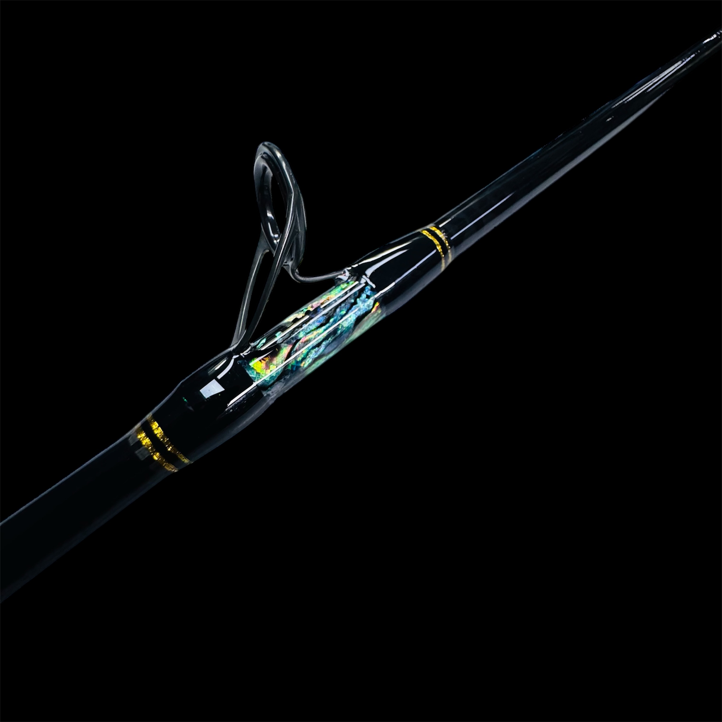 Αποτελείται συνολικά από 8+1 ανοξείδωτους οδηγούς Fuji “ΚL” που είναι ειδικοί για χρήση σε θαλασσινό νερό. Είναι κατασκευασμένοι με τέτοιον τρόπο ώστε να διαχειρίζονται άψογα τις πολύ μικρές διατομές νήματος (PE0.2-PE0.6) που απαιτεί η τεχνική του Ajing. Έχουν τοποθετηθεί σε σωστά σημεία κατά μήκος του καλαμιού ώστε το καλάμι να λειτουργεί εξαιρετικά. Η ένωση των δύο στελεχών του γίνεται με την ασφαλή μέθοδο του Spigot, ενώ η λαβή του είναι κατασκευασμένη από carbon και αυτή για ακόμα μεγαλύτερη μείωση του συνολικού βάρους.